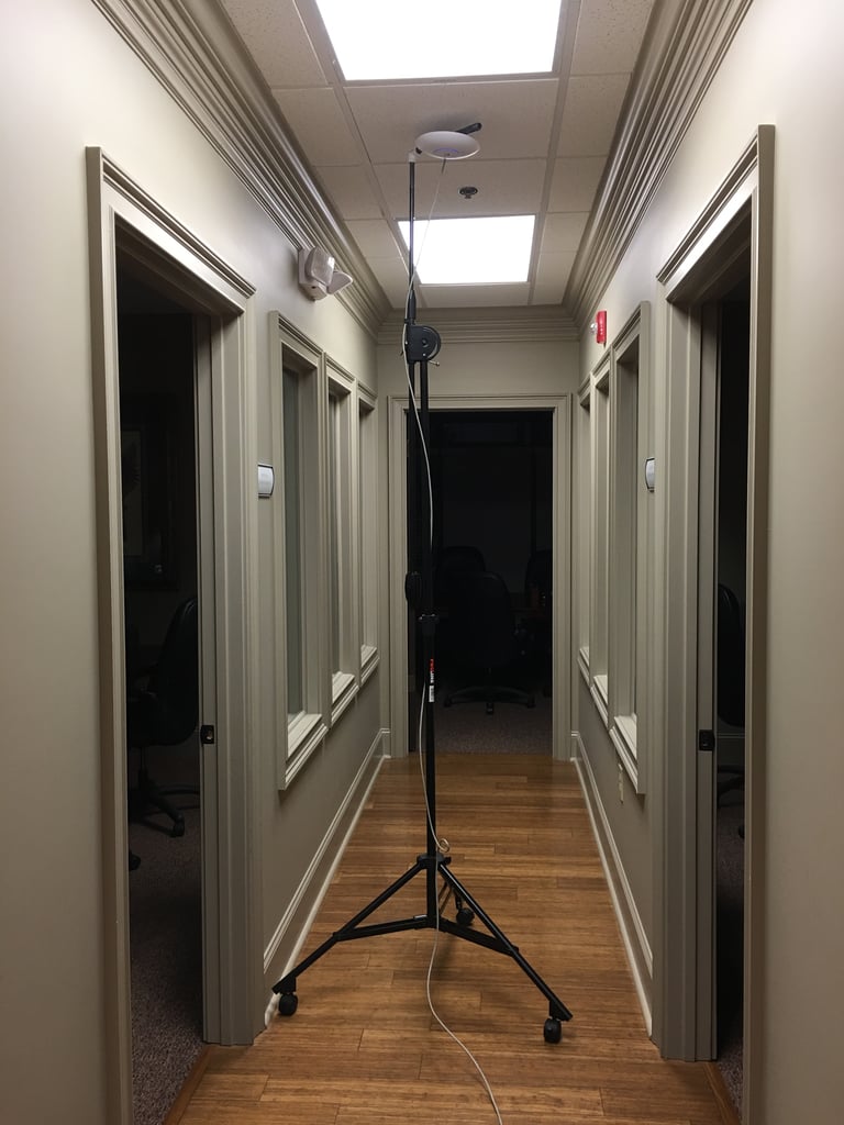 We use a Wi-Fi AP on-a-stick to check signal strength and interference at each location before final installation.